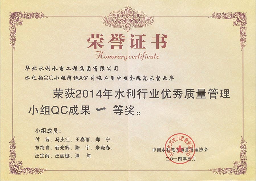 2014年水之韵QC小组成果一等奖