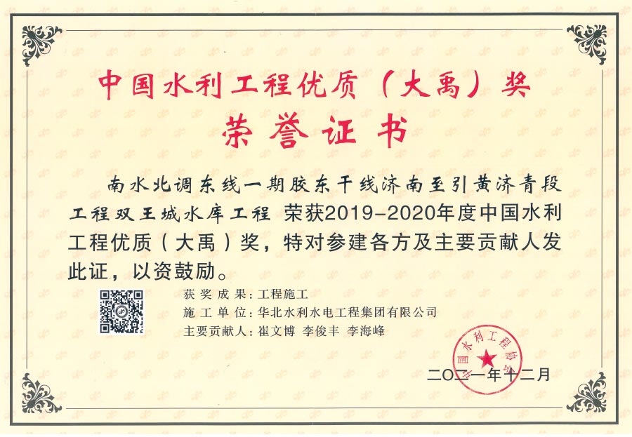 2019-2020年度中国水利工程优质(大禹)奖 更新时间:2023-01-20 点击:2393 所属栏目:企业荣誉 Update Time:2023-01-20 Hits:2393 Belong Column:Honor