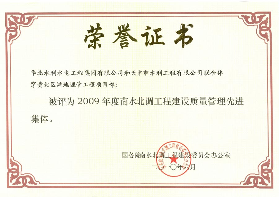南水北调工程建设质量管理先进集体 更新时间:2023-01-20 点击:2063 所属栏目:企业荣誉 Update Time:2023-01-20 Hits:2063 Belong Column:Honor