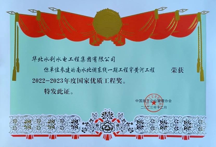更新时间: 点击:1866 所属栏目:集团要闻 Update Time: Hits:1866 Belong Column:近日,中国施工企业管理协会在北京会议中心召开 “2022-2023年度国家优质工程奖总结表彰大会”,我公司参建的南水北调东线一期工程穿黄河工程荣获2022-2023年度国家优质工程奖。