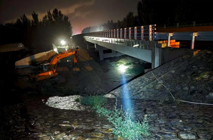 7月28日15时,按照既定方案,机械设备紧锣密鼓抵达仓桑公路桥缺口现场,紧急封堵作业全面展开!抢险人员同步备足“防汛包”,用于边坡防护压实。全体抢险人员克服困难,连续奋战7小时。至当晚22时,缺口成功实现闭合,险情得到有效控制,为周边群众生命财产安全筑起了一道坚实防线。