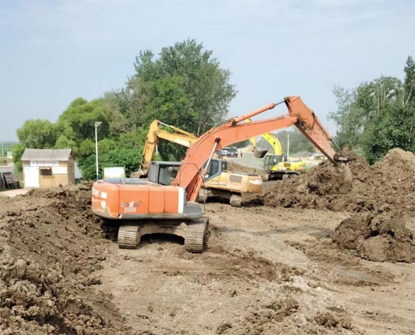 快速抢险:针对堤防薄弱环节,项目部调集设备(挖掘机11台、推土机8台、运输车15辆)和土料对缺口进行封堵,填筑高程均达到设计标高,填筑高度均满足度汛要求。