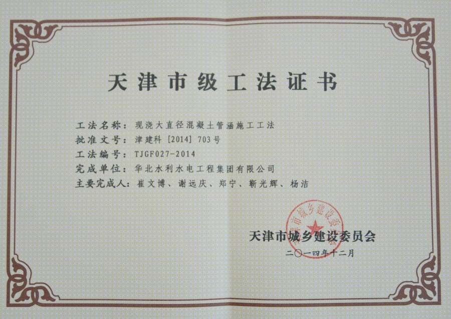 天津市级工法证书